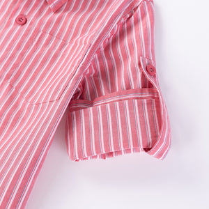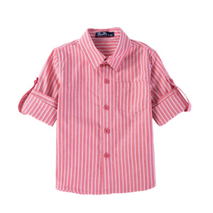 This relaxed-fit, long-sleeve striped shirt, featuring foldable sleeves, will keep him comfortable and stylish for Christmas parties and dinners.