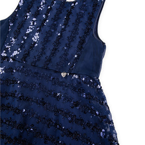 This simple yet stunning electric blue dress is perfect for making a statement at Christmas parties. Featuring sparkly sequins and a flared design, it’s ideal for swirling and twirling—a dress that girls will love.