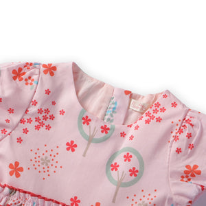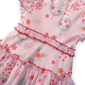 Pink dress for girls, made in soft lightweight cotton. Traditionally-styled, it has pretty ruffle and puffed sleeves. Complete with bow at the back.