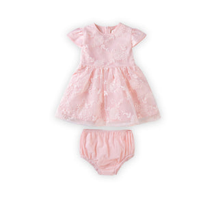 This dress is simple and pretty. Features smocking across the dress, round piping collar, gathered skirt and puff sleeves. Your little one will look too sweet in this dress!