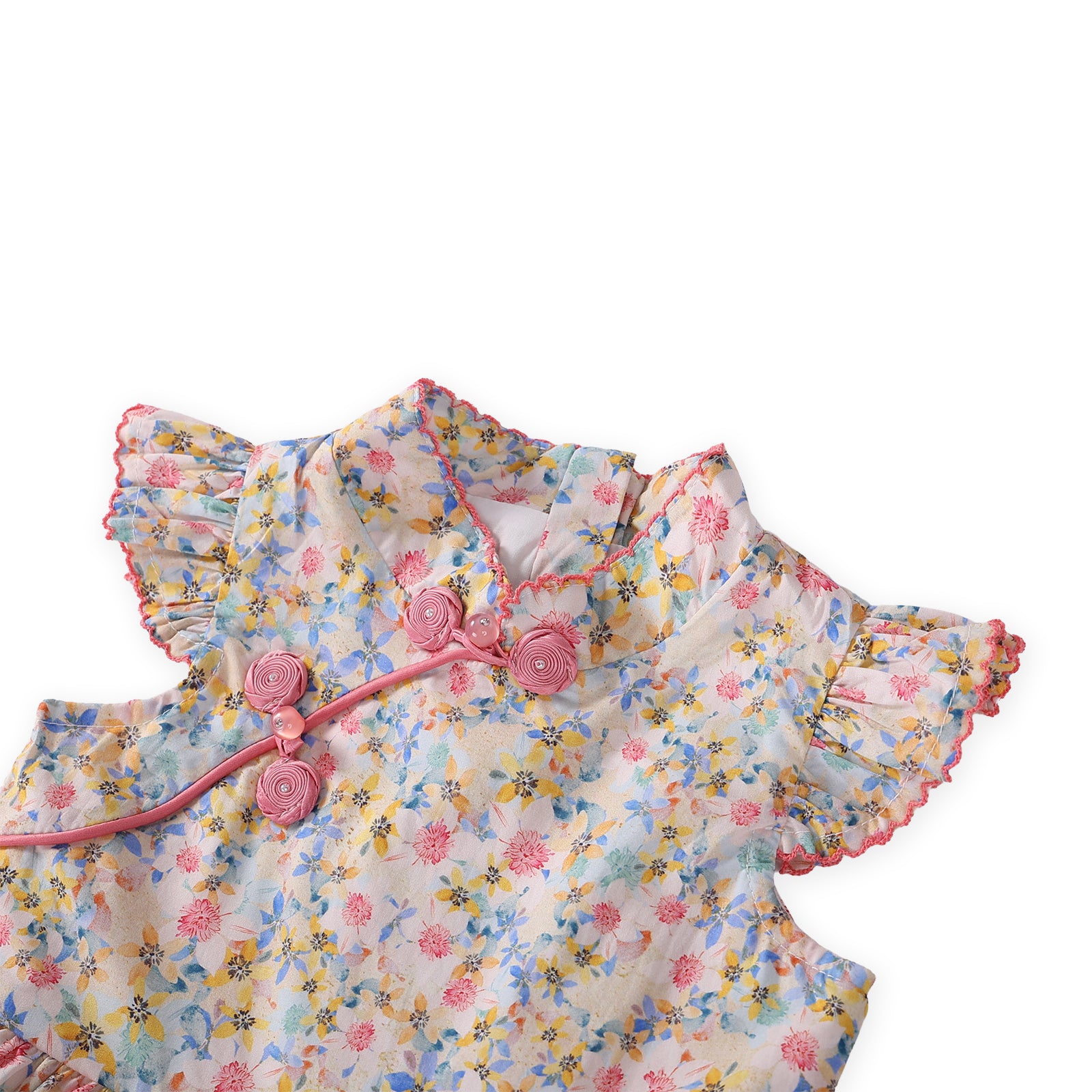 A fresh take on tradition! This tiered cheongsam blends soft cotton comfort with charming trim details, ideal for festive gatherings.
