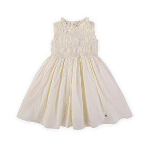 Simply beautiful, this smocked dress features a waist-defining band and a flattering flare, making it perfect for any occasion. Pair it with simple hair accessories to complete the look.