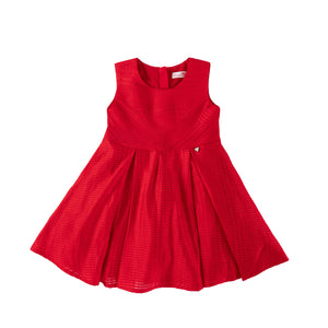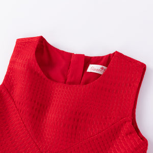 A gorgeous and stylish red dress featuring pleats and a flared silhouette, with a plain red color and symmetrical design. This dress is perfect for Christmas parties and visiting relatives during Chinese New Year.