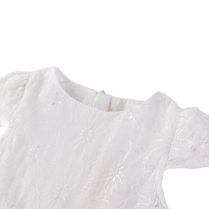 Float away in this white floral dress! This sweet, soft, and lightweight dress is perfect for an effortless flower girl look. Style with simple hair accessories to finish the look.