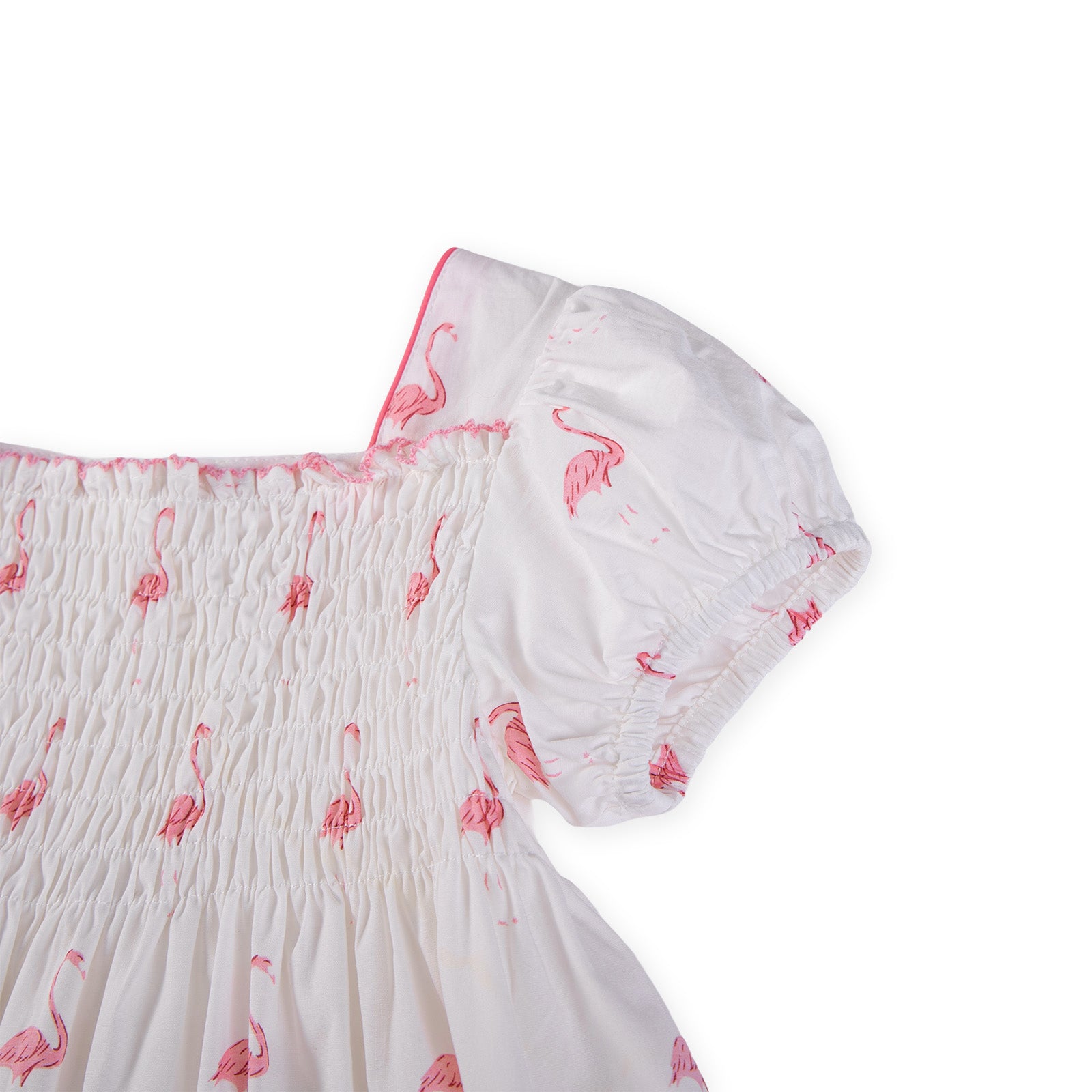 Little adventures start here! This adorable flamingo-print smocked dress, featuring sweet ruffle edges, puff sleeves, and a swishy flared skirt, is made for running, twirling, and giggling all weekend long. Cute, comfy, and full of fun!