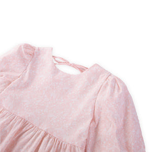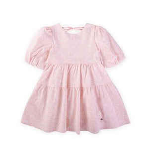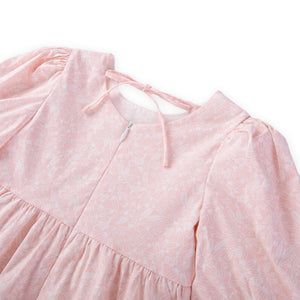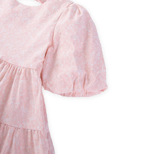 Sweet and flowy, this tiered maxi dress is destined to become her favorite. Featuring delightful puff sleeves, a gathered waist, a tied ribbon at the back, and a stunning all-over geometric floral print, it’s a must-have addition to her wardrobe.