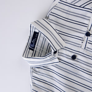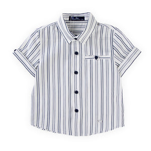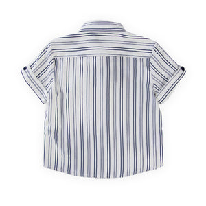 This black stripes shirt is super cool! It features all over stripes with a welt pocket.