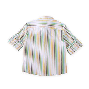 This bold and preppy shirt features classic stripes, making it an ideal choice for smart-casual wear. Designed with roll-up sleeves for added versatility, it offers both style and comfort. In addition, a matching dress is available for sister — perfect for coordinated, twinning moments.