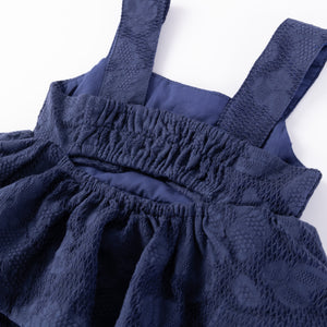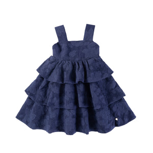 This deep blue dress has everything you need for a fun day out. It combines comfort and style with a layered, gathered skirt, making it perfect for fashionistas.