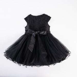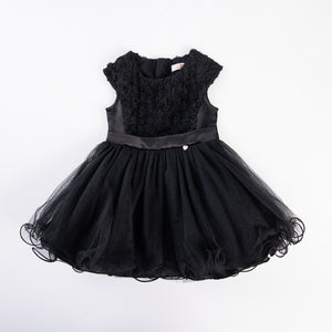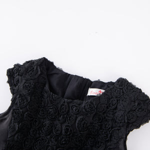 Turn heads at any celebration in this captivating black floral dress. The bodice blooms with dimensional 3D flower appliqués, lending tactile beauty and timeless appeal. Below, a layered skirt sways with every step—twirl-worthy and lighthearted—creating a graceful fit‑and‑flare silhouette that’s equal parts poised and playful.