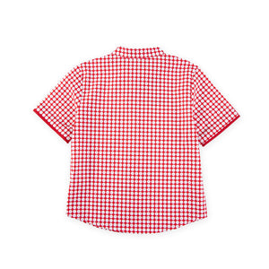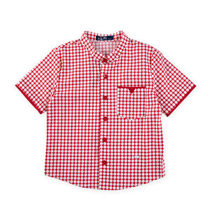 Defined by a minimalist silhouette and accented with a red checkered mandarin collar, this design is meticulously crafted from lightweight cotton for a refined balance of comfort and elegance. The sharp straight cut lends a modern, effortless edge, making it an elevated choice for Chinese New Year celebrations. Style it with tailored chinos, contemporary denim, or sleek shorts for a confident statement. For a curated festive wardrobe, a coordinated family set is also available.