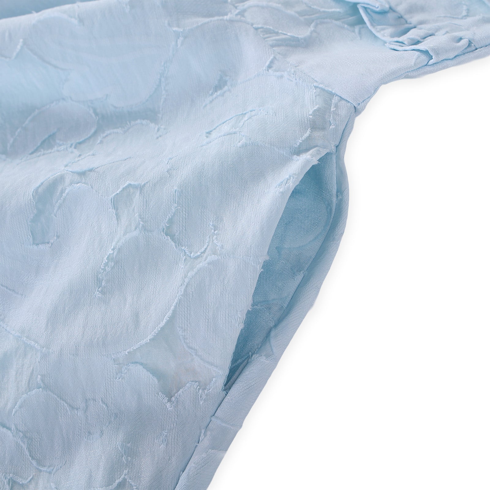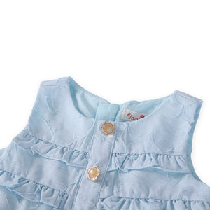 This semi-casual dress features charming ruffles on the bodice and a flared skirt designed for running, playing, and twirling. Perfect for dinners, parties, or any occasion that calls for easy elegance.
