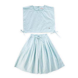 Fun and stylish, this set is versatile with its drawstring top. Perfect for movement, the pants combine the look of a skirt with the practicality of trousers. Together, they create an effortlessly coordinated look.