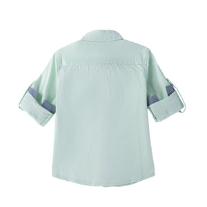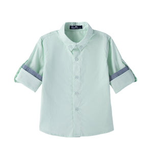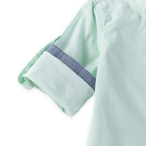 This classic green shirt is versatile and offers multiple styling options. Wear it plain, roll up the all-green sleeves, or go for a preppy look with the roll-up sleeves that reveal a blue-lined cuff for a touch of contrast and added style. It's a must-have for any wardrobe, perfect for formal occasions, weekend gatherings, and everyday events.
