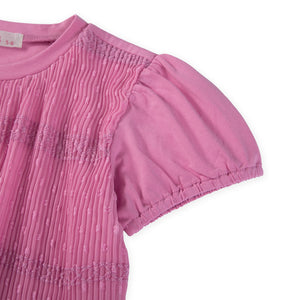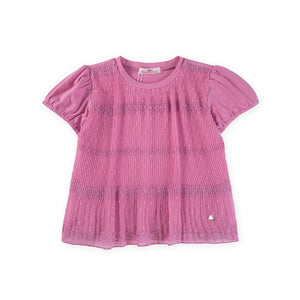 Designed for all-day comfort, this T-shirt keeps your little one effortlessly stylish from playtime to special outings. The plum color adds a unique and special touch, while delicate, feminine lace detailing on the front brings a sweet, elegant finish—making it a versatile piece you’ll reach for again and again.