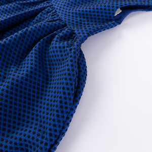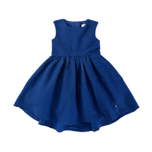 The interplay of electric blue and rich navy tones adds dimension and sophistication. The sculpted, structured bodice elegantly defines the waist, while the voluminous skirt flows effortlessly—creating a flattering fit‑and‑flare silhouette that balances poise and playful movement. Whether you're attending weddings, birthday parties, or glamorous evening events, this silhouette is designed to impress.