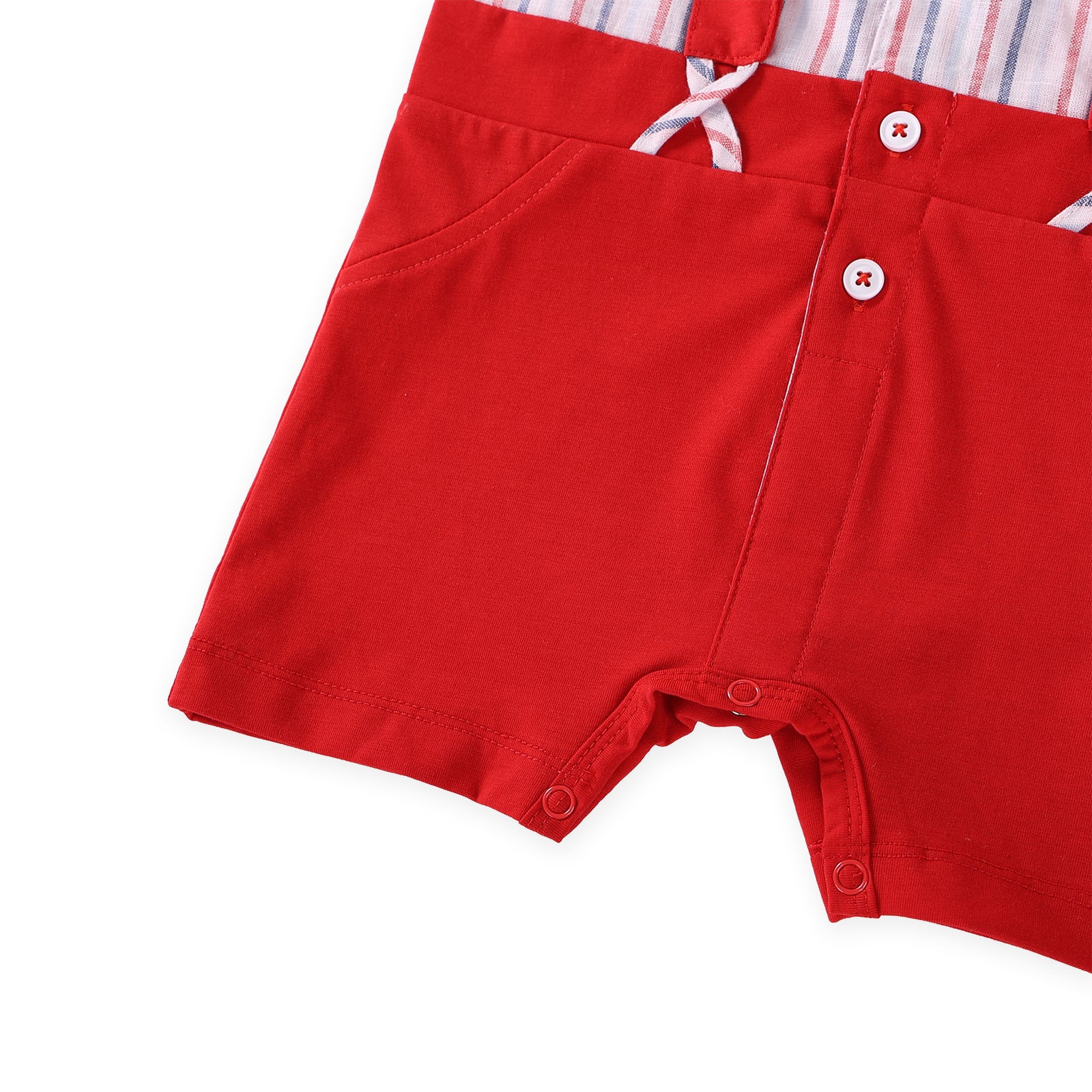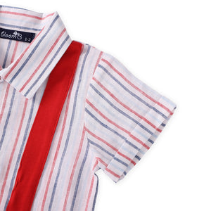 This adorable one-piece set pairs red shorts with a beautifully striped shirt, creating a timeless look for little boys. Made from a soft red, blue, and white cotton-linen blend, it’s finished with sweet cross-over shoulder straps that offer both comfort and a charming touch of detail. Perfect for Christmas gatherings, New Year celebrations, or any festive occasion.